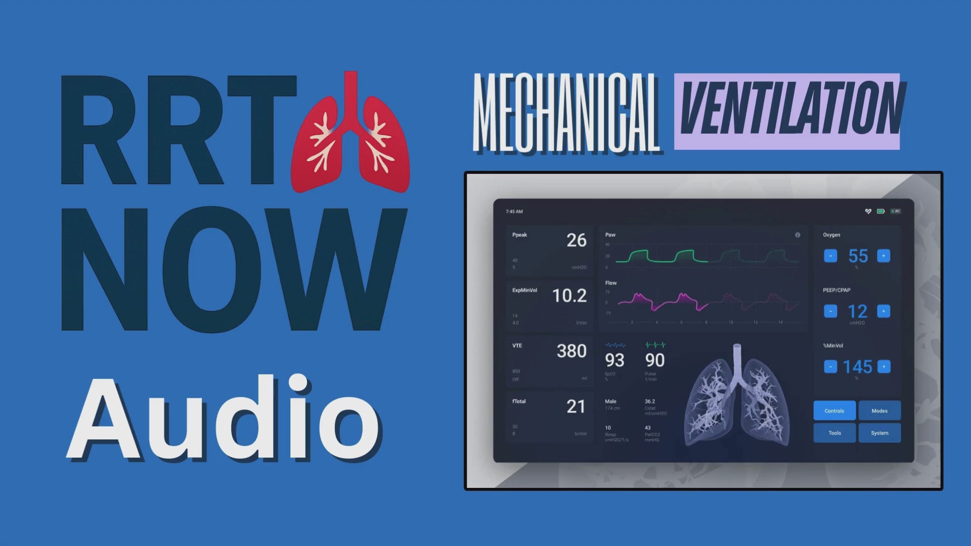 Mechanical ventilation & AUDIO study guide for RT students. Learn vent modes, ABG interpretation, vent changes and troubleshooting for NBRC TMC prep.